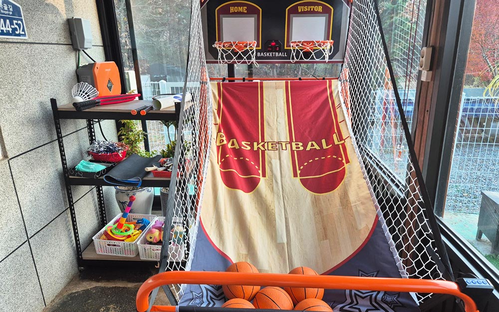 노래방, 실내 바비큐장, 실내 대형 온수 수영장, 정글짐, 족구장, 트램펄린